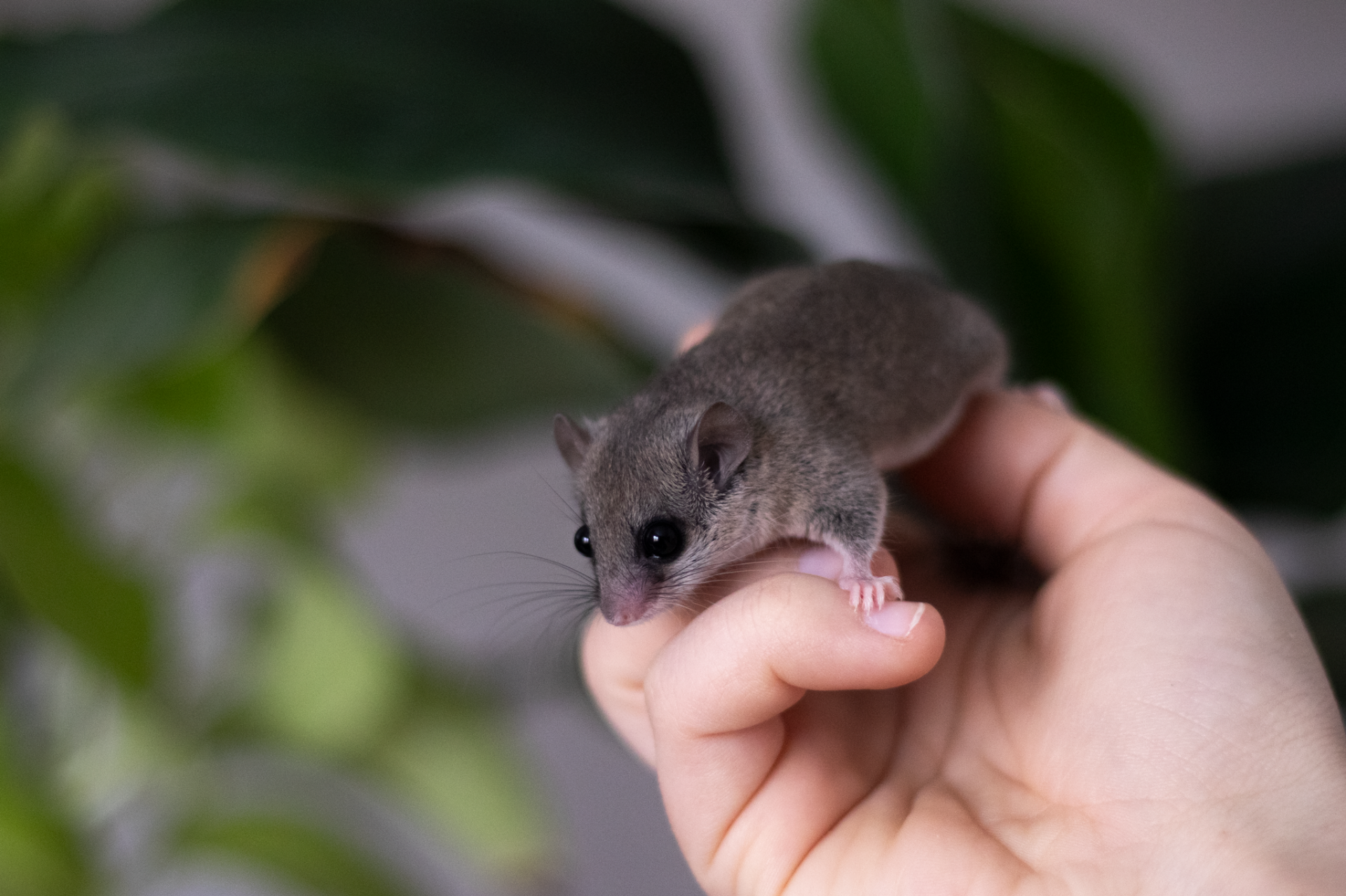 Ronja's Asuri, barva: wild/het pied, narozena: 21.5.2025, vrhy: E, pozn.: 2x značka na levém stehni
